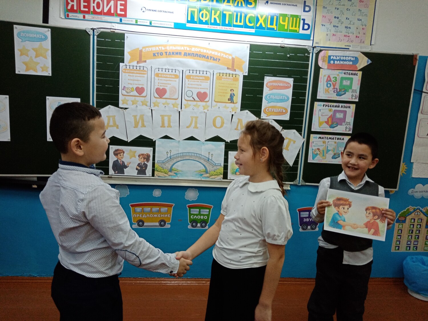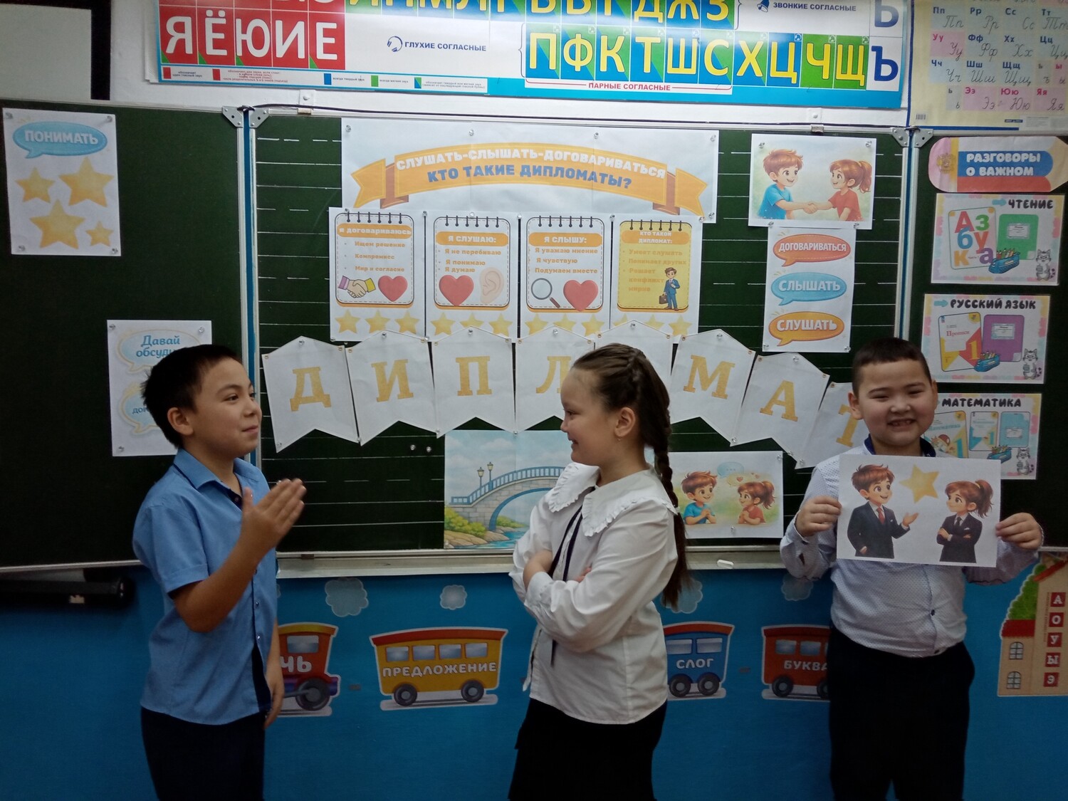 9 февраля 2026 года в 1 классе прошел урок «Разговоры о важном» на тему «Слушать, слышать и договариваться. Кто такие дипломаты?». Занятие было приурочено ко Дню дипломатического работника, который отмечается 10 февраля.Ребята в доступной форме узнали о том, кто такие дипломаты и какие качества помогают им в работе. Для погружения в тему посмотрели фрагмент из мультфильма «Лунтик»: на его примере дети обсуждали, почему важно решать конфликты мирно. Затем был проведен практикум «Договоримся без ссоры» — обучающиеся разбирали знакомые школьные ситуации и предлагали дипломатичные способы выхода из них.